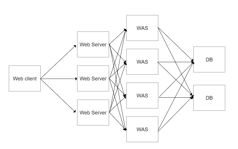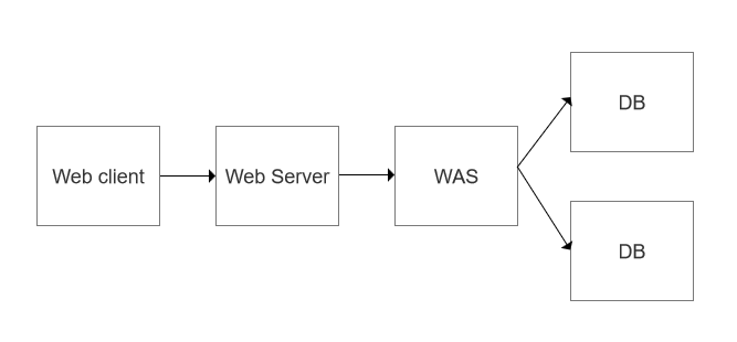 Web client → 웹서버 → WAS → DB서버