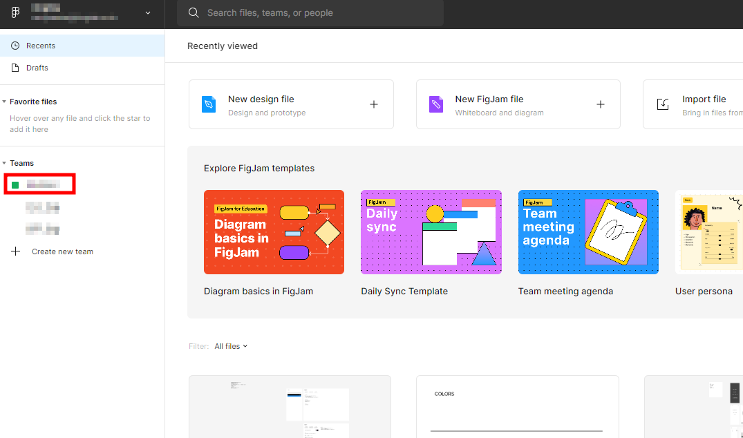 1) 피그마 계정에 들어가서 좌측 부분의 팀 계정(?) 부분을 누른다.