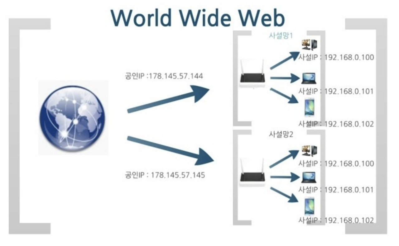 공유기에 연결되어 있는 가정이나 회사의 각 네트워크 기기에는 사설 IP를 할당한다.